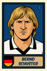 Bernd Schuster foi um meio-campista alemão de enorme talento e visão de jogo. Brilhou por grandes clubes como Barcelona, Real Madrid e Atlético de Madrid. Apesar de uma carreira internacional curta pela Alemanha — incluindo a Euro 1980 — é lembrado por sua criatividade, passes milimétricos e potência nos chutes. Um dos maiores da história da Bundesliga, foi um clássico camisa 10 cerebral e técnico.