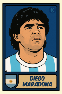 Maradona foi um dos maiores jogadores da história do futebol. Brilhou no Napoli, onde venceu dois Campeonatos Italianos e a Copa da UEFA. Pela Argentina, foi campeão mundial em 1986, com atuações lendárias, incluindo o “Gol do Século” e a “Mão de Deus”. Disputou quatro Copas do Mundo (1982, 1986, 1990, 1994). Era conhecido por sua genialidade, drible curto e liderança em campo.