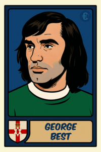 George Best, atacante norte-irlandês, foi um dos jogadores mais talentosos e carismáticos de sua geração. Com habilidade técnica impressionante e visão de jogo, foi uma estrela do Manchester United, onde conquistou títulos importantes, como a Liga dos Campeões de 1968. Best foi eleito Bola de Ouro em 1968, mas sua carreira foi marcada por altos e baixos fora de campo. Não conseguiu classificar sua seleção à Copa do Mundo, mas se tornou uma lenda do futebol britânico.