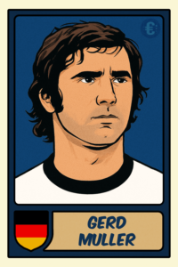 Gerd Muller, atacante alemão, é um dos maiores goleadores da história do futebol. Conhecido por sua incrível capacidade de finalização, “Der Bomber” fez história no Bayern de Munique e na seleção alemã. Campeão da Copa do Mundo de 1974, também venceu a Eurocopa de 1972 e foi artilheiro da Copa de 1970 e Bola de Ouro no mesmo ano. Conquistou múltiplos títulos de clubes, incluindo três Ligas dos Campeões, e se destacou como um dos maiores goleadores de todos os tempos, com mais de 700 gols em sua carreira.