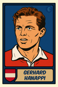 Gerhard Hanappi, meio-campista e zagueiro austríaco, foi um dos maiores jogadores do futebol austríaco. Conhecido por sua técnica refinada, visão de jogo e habilidade de passe, Hanappi brilhou no Rapid Viena, onde conquistou múltiplos campeonatos. Também foi destaque na seleção da Áustria, participando das Copas de 1954 e 1958. Com grande inteligência tática, ele é lembrado como um dos maiores jogadores da história do futebol austríaco.