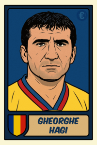 Conhecido como o “Gênio dos Cárpatos”, Hagi foi um meia romeno habilidoso, com grande visão de jogo, dribles e chutes potentes. Brilhou por Steaua, Real Madrid, Brescia, Barcelona e Galatasaray. Disputou três Copas do Mundo (1990, 1994, 1998), sendo destaque em 1994, quando levou a Romênia às quartas. Ídolo nacional e figura central na era dourada do futebol romeno.