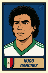 Hugo Sánchez foi um dos maiores atacantes mexicanos de todos os tempos. Ídolo do Real Madrid, onde conquistou cinco La Ligas consecutivas, foi cinco vezes artilheiro do campeonato espanhol. Com grande impulsão e precisão nas finalizações, ficou famoso por seus gols de voleio. Disputou três Copas do Mundo (1978, 1986 e 1994) e é um ícone eterno do futebol latino-americano.