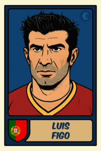 Craque português de técnica refinada e dribles elegantes, Figo brilhou por Sporting, Barcelona, Real Madrid e Inter. Venceu a Bola de Ouro em 2000 e foi protagonista da geração que levou Portugal às semifinais da Euro 2000 e da Copa de 2006. Disputou 3 Copas do Mundo (1998, 2002, 2006). Foi símbolo de criatividade, inteligência e uma polêmica transferência entre Barça e Real.